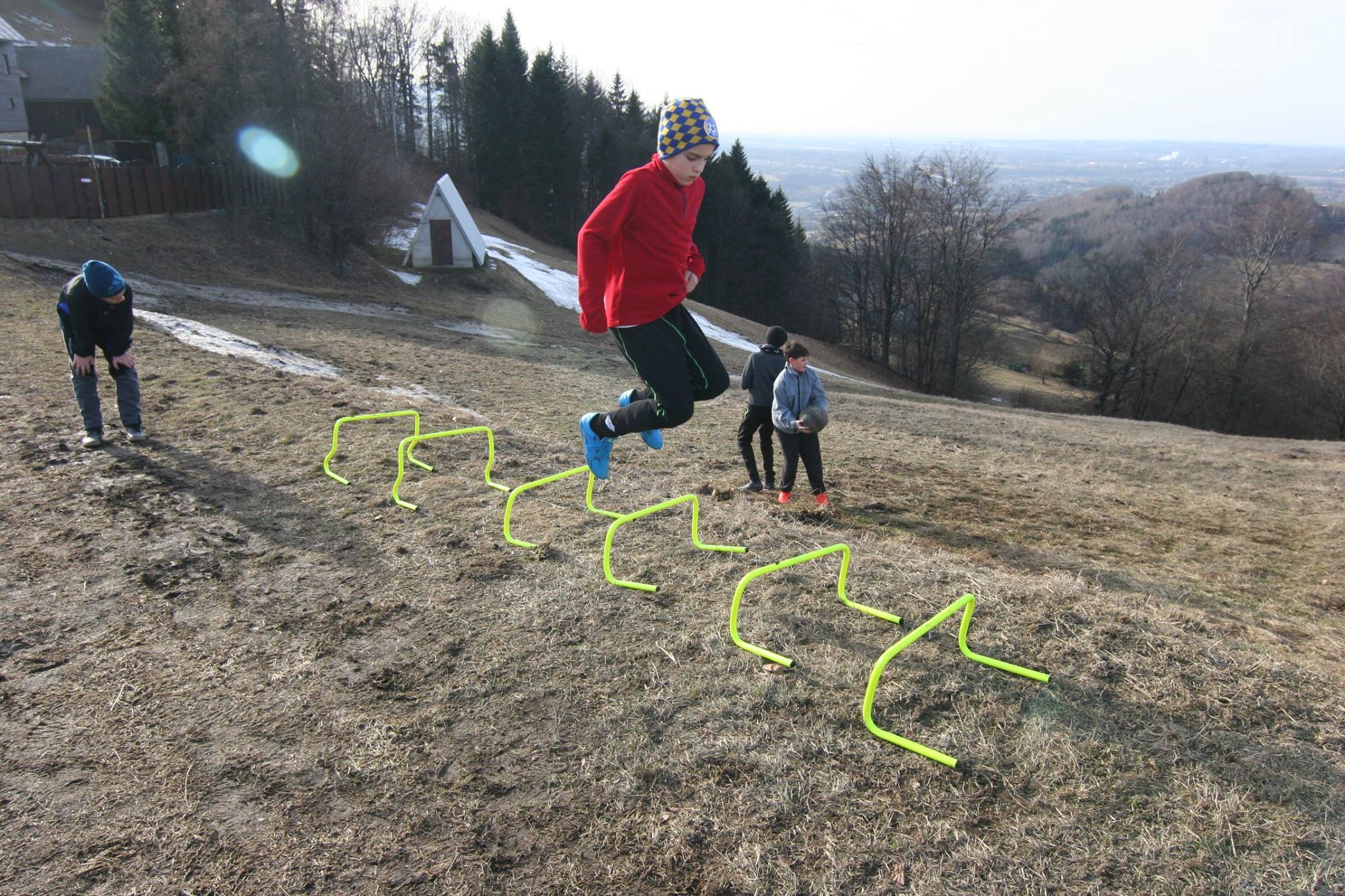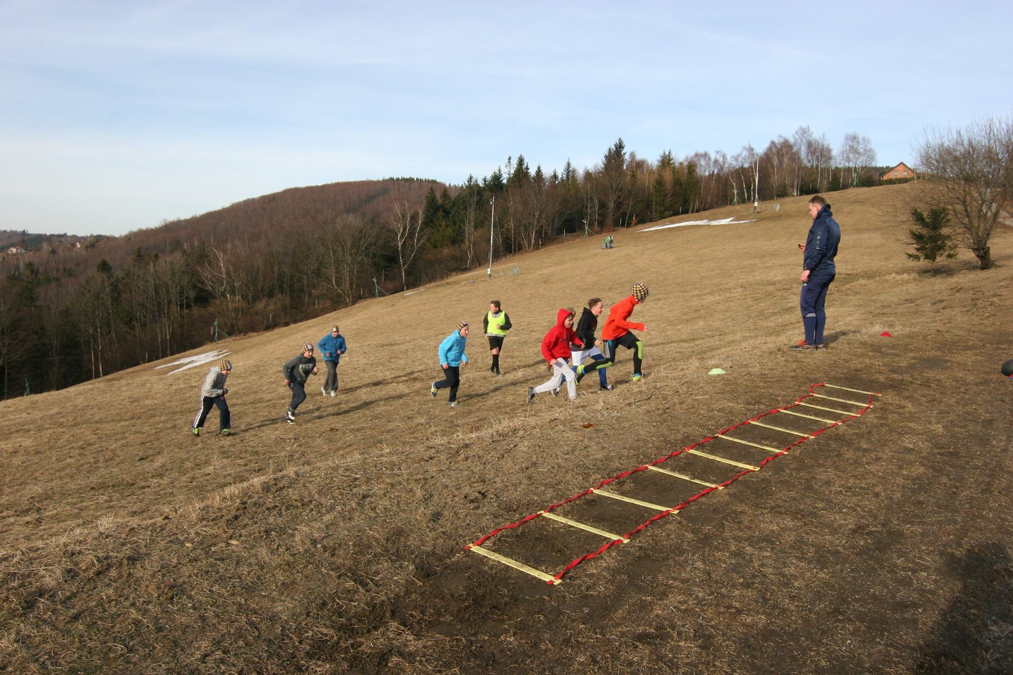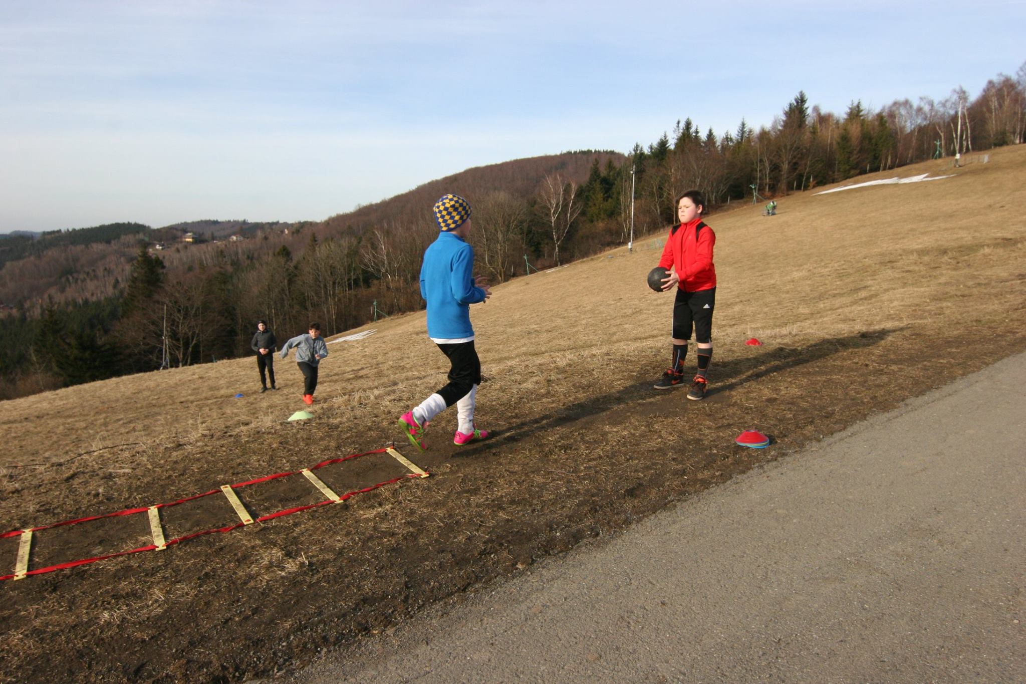 V pátek si naši žáčci na soustředění v Hrádku na Jablunkovsku mohli užívat krásné slunečné počasí. Dopolední trénink pod vedením Dušana Sochy a Patrika Poštulky začal v 10 hodin lehkým výklusem, kterým se kluci přesunuli na stanoviště. Tam je čekala o poznání větší zátěž.