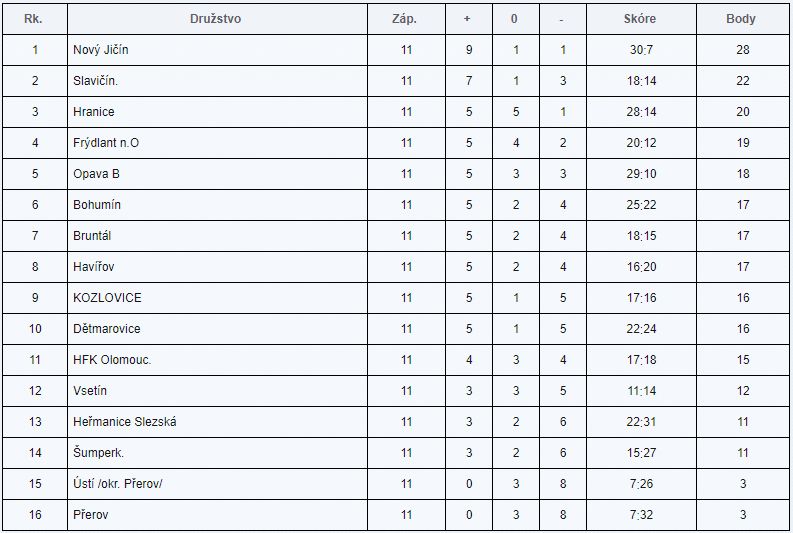 Muži Bosporu se protrápili k domácímu vítězství nad Vsetínem šťastnou trefou Františka Hanuse po teči v poslední minutě. Hosté přitom byli fotbalovější a nebezpečnější, naplno se ovšem projevilo, že Valaši jsou třetím nejhůře zakončujícím mužstvem soutěže. Bohumíňáci se tak posunuli na 6. místo tabulky.