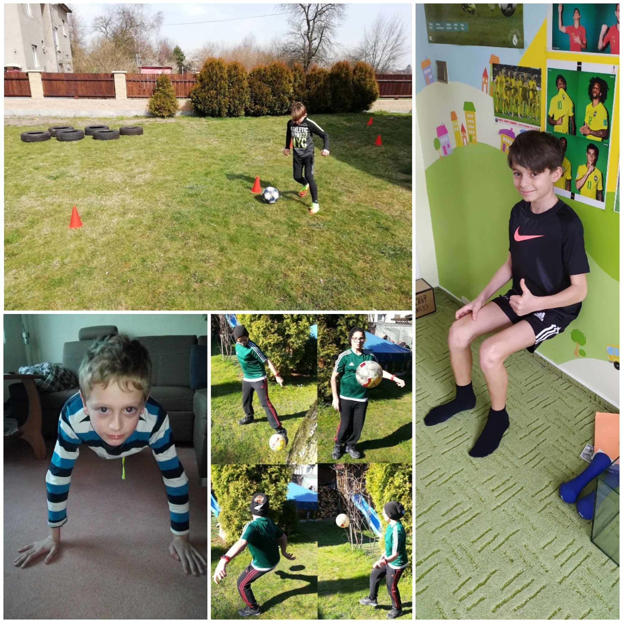 No, a zapomenout nesmíme ani na naše mladé talenty. Trenér mládeže Stanislav Bártl ze snímků našich malých fotbalistů vytvořil zajímavé koláže, z nichž je patrné, že trénovat se dá i doma. Ale na hřišti je to lepší, viďte kluci? Tak se tam snad brzy zase uvidíme!