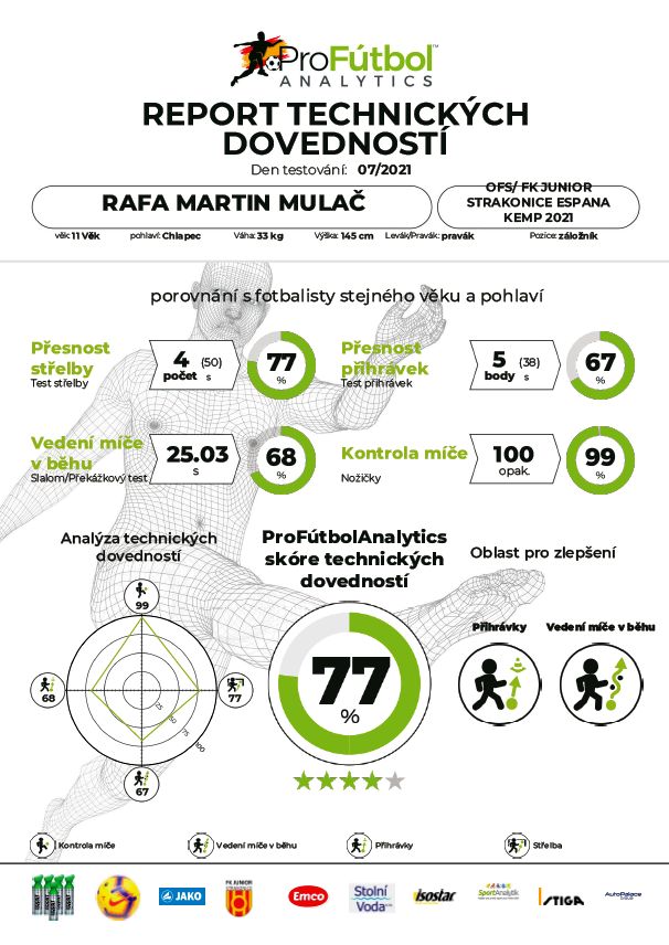 Absolvuješ sám, nebo ve svém klubu tyto disciplíny a vygeneruješ si „Report - fotbalové vysvědčení“, kde budou tvé výsledky porovnány s naší bohatou databází hráčů a vrstevníků na mezinárodní úrovni.