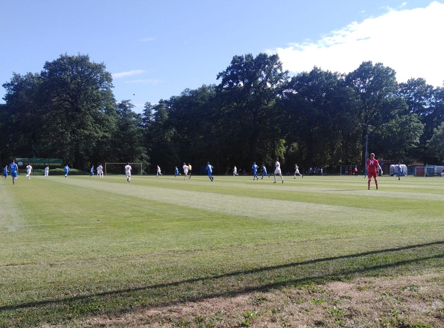 Rozhodně zajímavější byl první poločas. Ve 12. minutě po přiťuknutí Petra Bloksche těsně minul šibenici Milan Halaška, to hosté zahrozili po standardce z hranice vápna, ale také se skóre neměnilo. Ve 26. minutě po akci Halašky pálil ve vápně mladíček Pilch, bohužel trefil jenom tyč. O dvě minuty později šli naopak do vedení hosté, když gól padl po ráně z bezprostřední blízkosti.