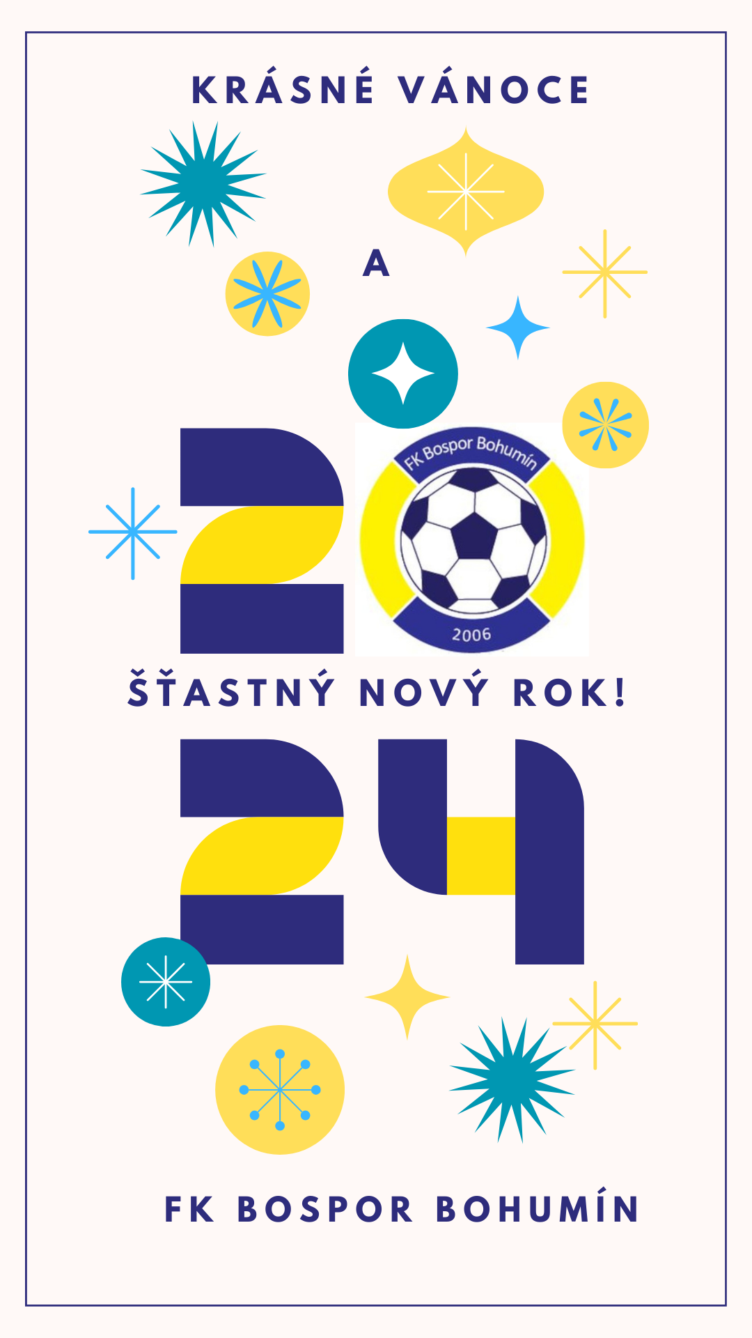 Vážení členové klubu, partneři, fanoušci a příznivci, dovolte nám popřát Vám všem krásné prožití vánočních svátků a úspěšný rok 2024. Děkujeme za přízeň, kterou jste nám prokazovali v minulých měsících a letech, a pevně věříme, že nám ji zachováte i do budoucna. Těšíme se na start druhé poloviny sezóny, kdy se zase začneme scházet při mistrovských zápasech.